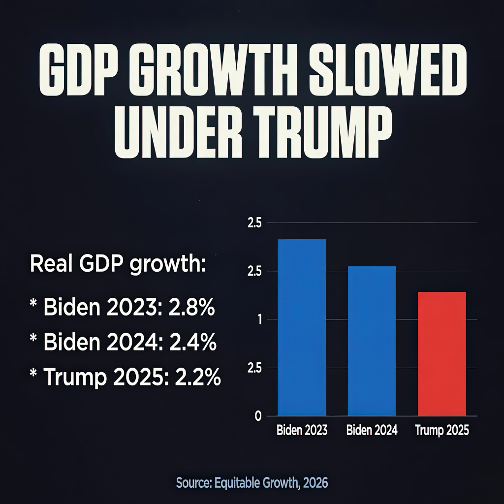 His second term has continued in the same abysmal tradition. GDP grew at 2.2% in 2025, down from 2.4% under Biden in 2024 and 2.8% in Biden’s final year. J.P. Morgan has since slashed its 2026 forecast to 1.3%.
