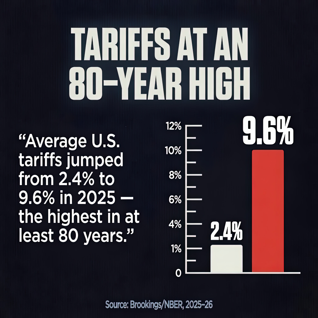 The tariffs Trump celebrated as a negotiating masterstroke drove the average import duty from 2.4% to 9.6%, the highest level in 80 years, with 90% of those costs passed directly to American consumers.