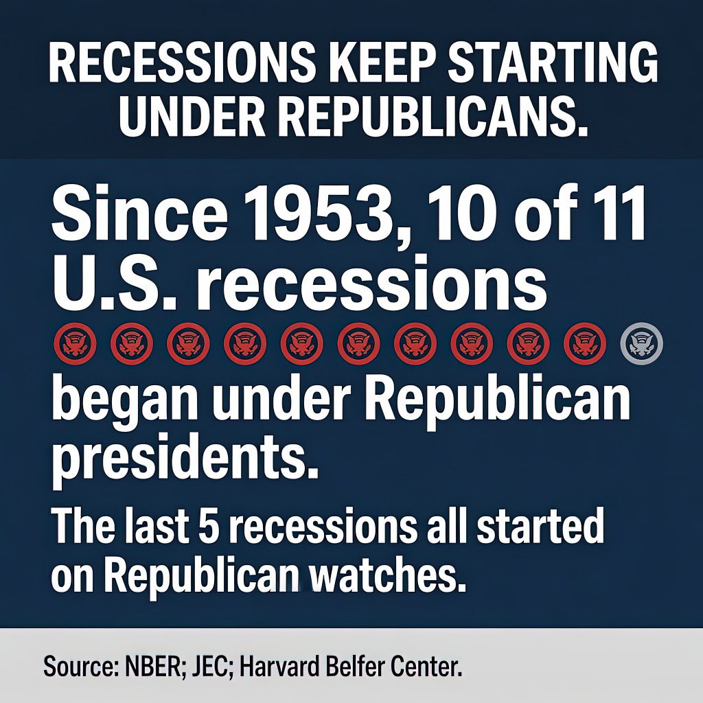 The Fox poll result is striking not because it represents some new truth, but because it finally punctures a myth that the data demolished long ago. Since 1953, ten of eleven recessions began under Republican presidents. The last five recessions, without exception, started on Republican watches.