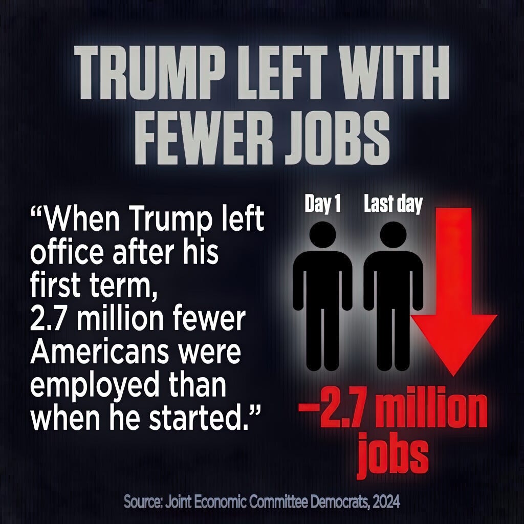 Trump ended his first term with 2.7 million fewer Americans employed than when he started.